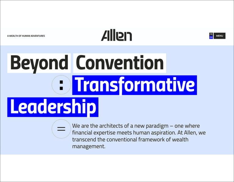 A powerful double meaning — transcending asset management to speak of richness in its noblest sense. Where traditional players talk performance and expertise, Allen places human aspirations at the heart of its promise.